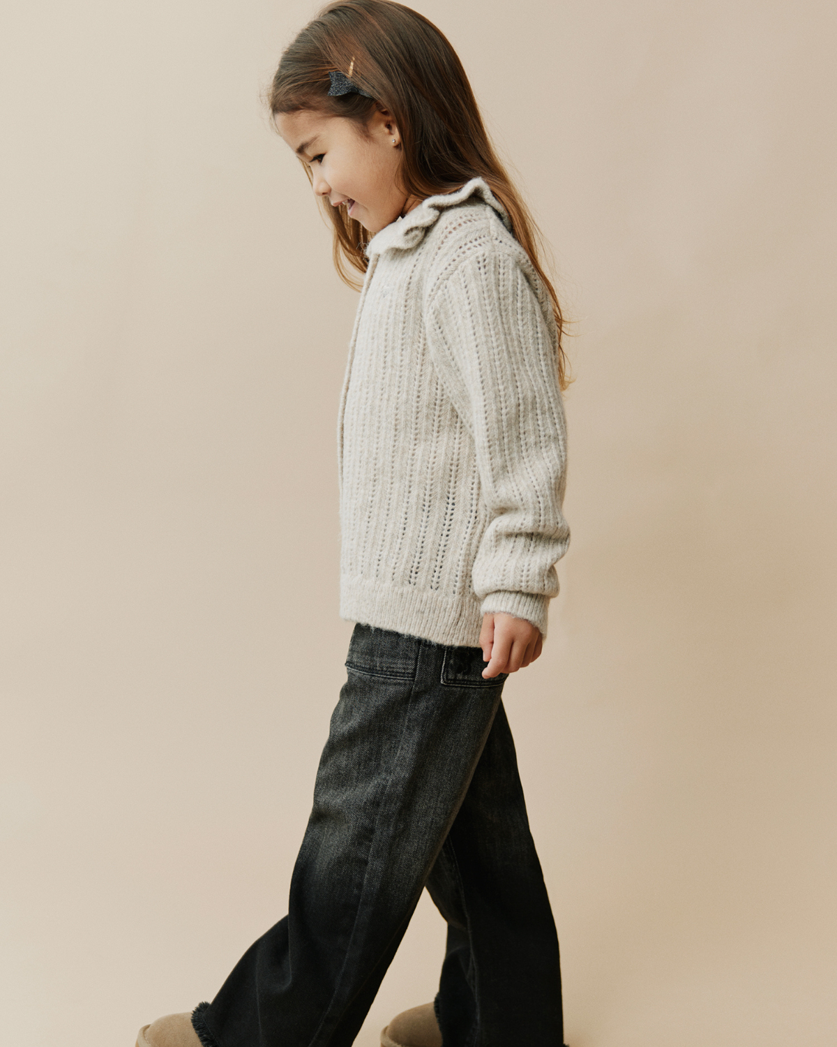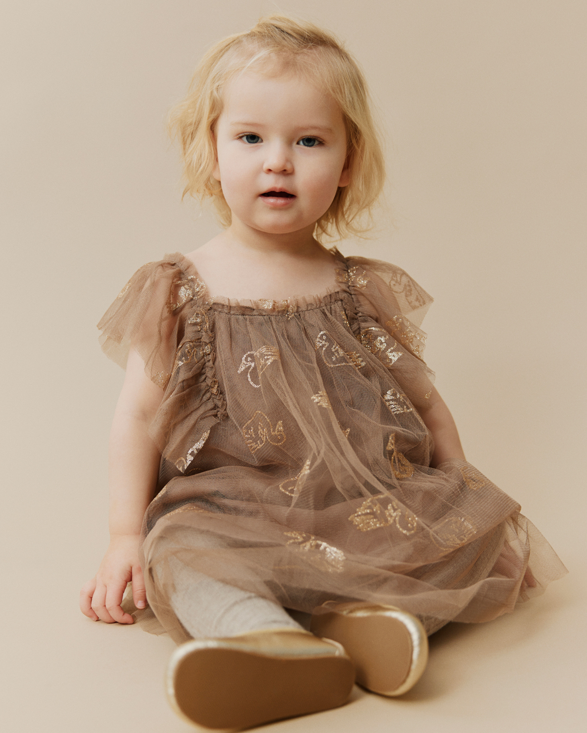 Kollektionen er inspireret af magien fra glemte danse og blidt hviskede historier. Tænk delikate blondekraver, glitrende tylskørter og snefnugs-lignende silhuetter, der stråler i gyldent lys. Varme håndstrik, bløde tern og blomsterapplikationer snurrer hen over marmorgulve, hver enkelt skaber en hvisken af gamle Paris – hvor tidløs elegance møder barndommens fortryllelse. Dørene til salen står åbne. Musikken begynder. Lad sæsonens mest fortryllende fortælling udfolde sig.