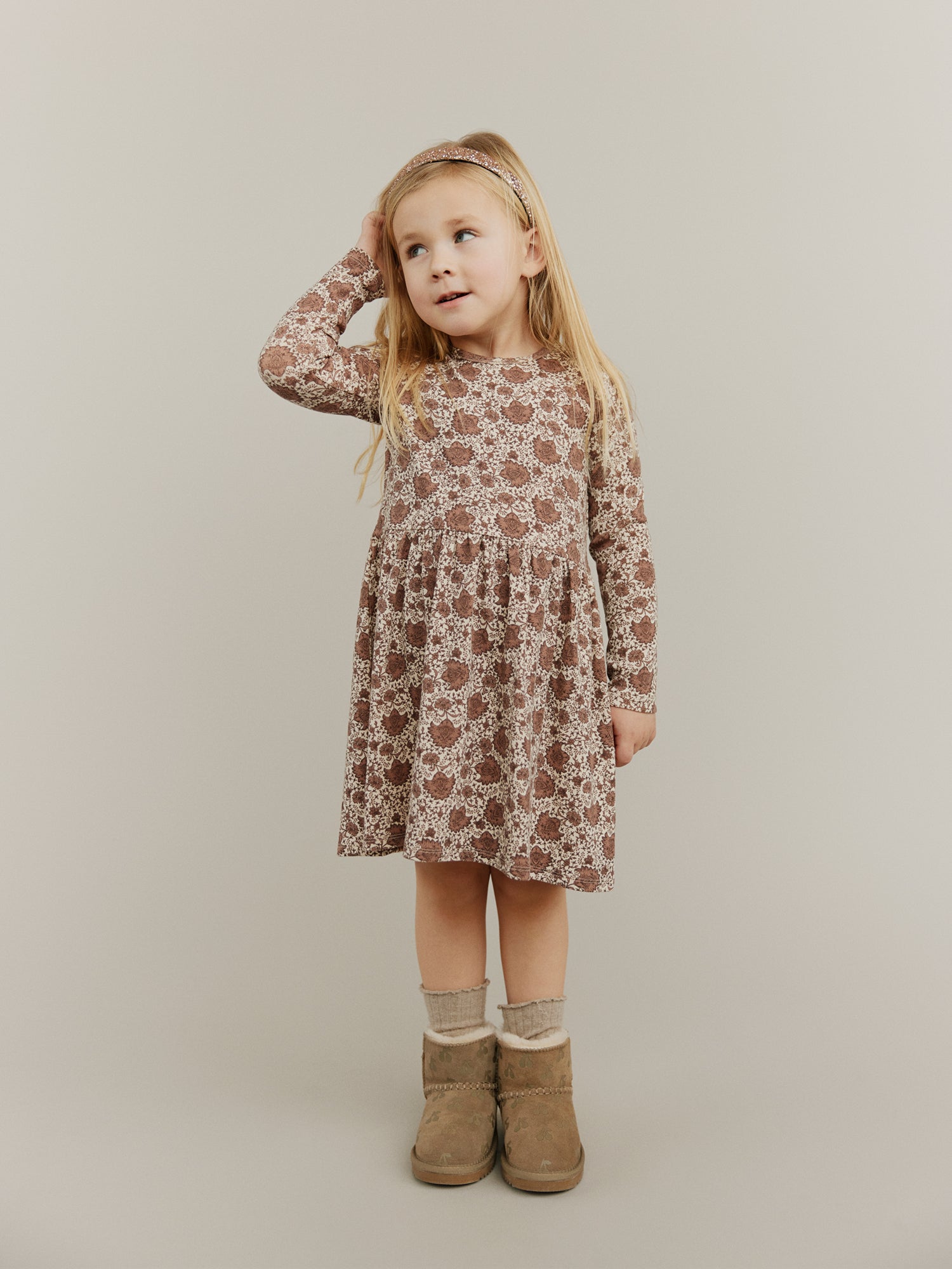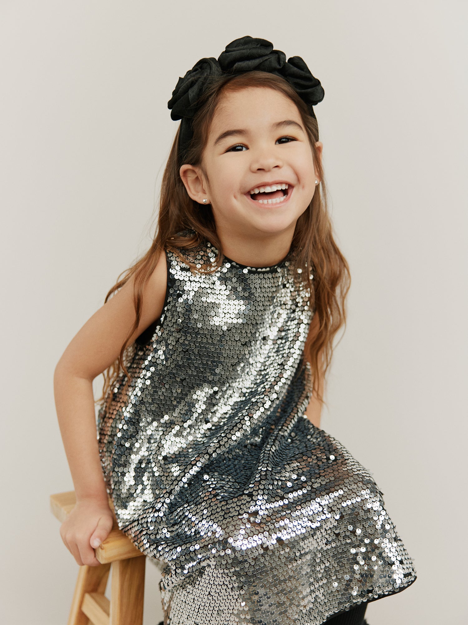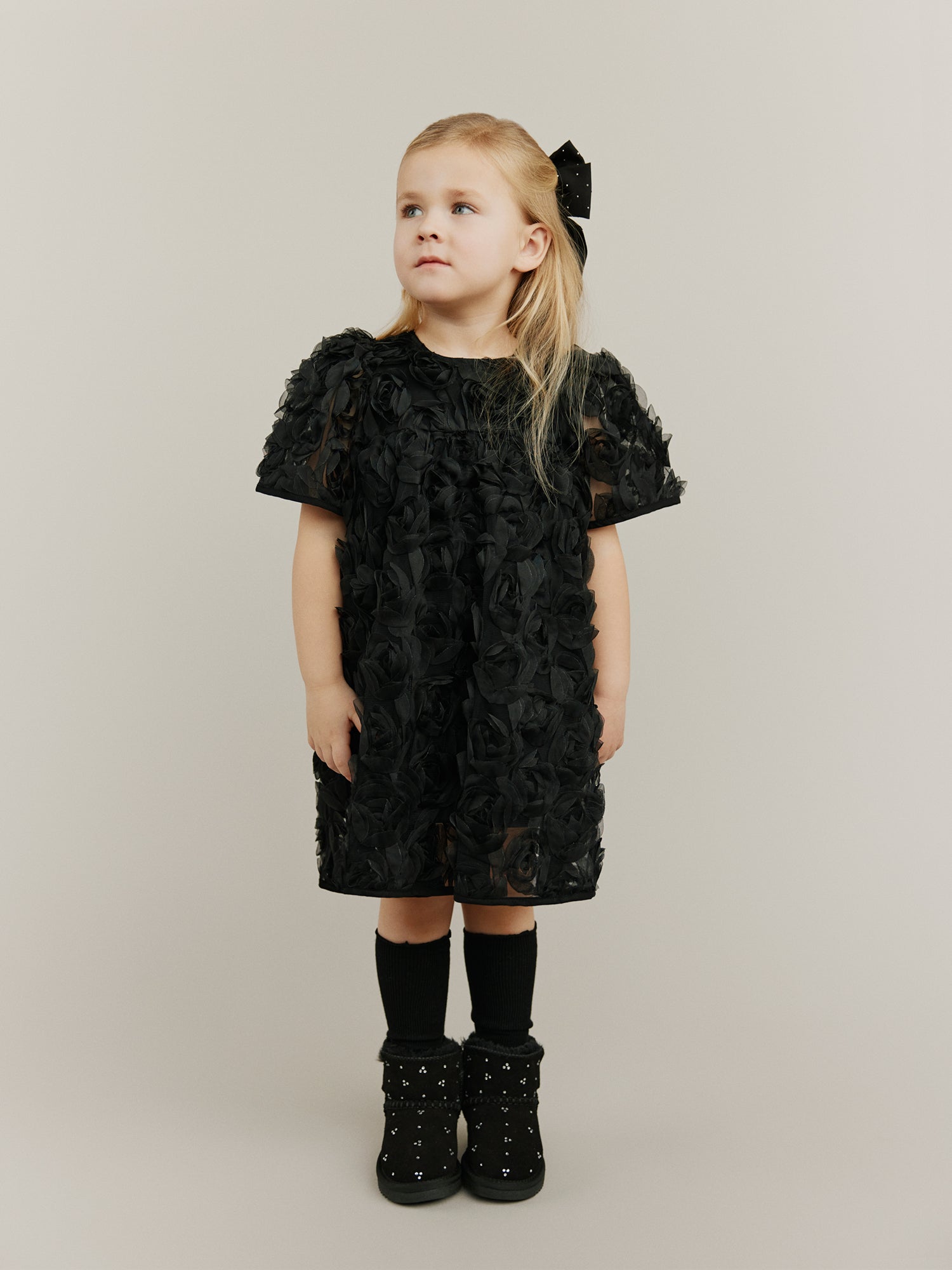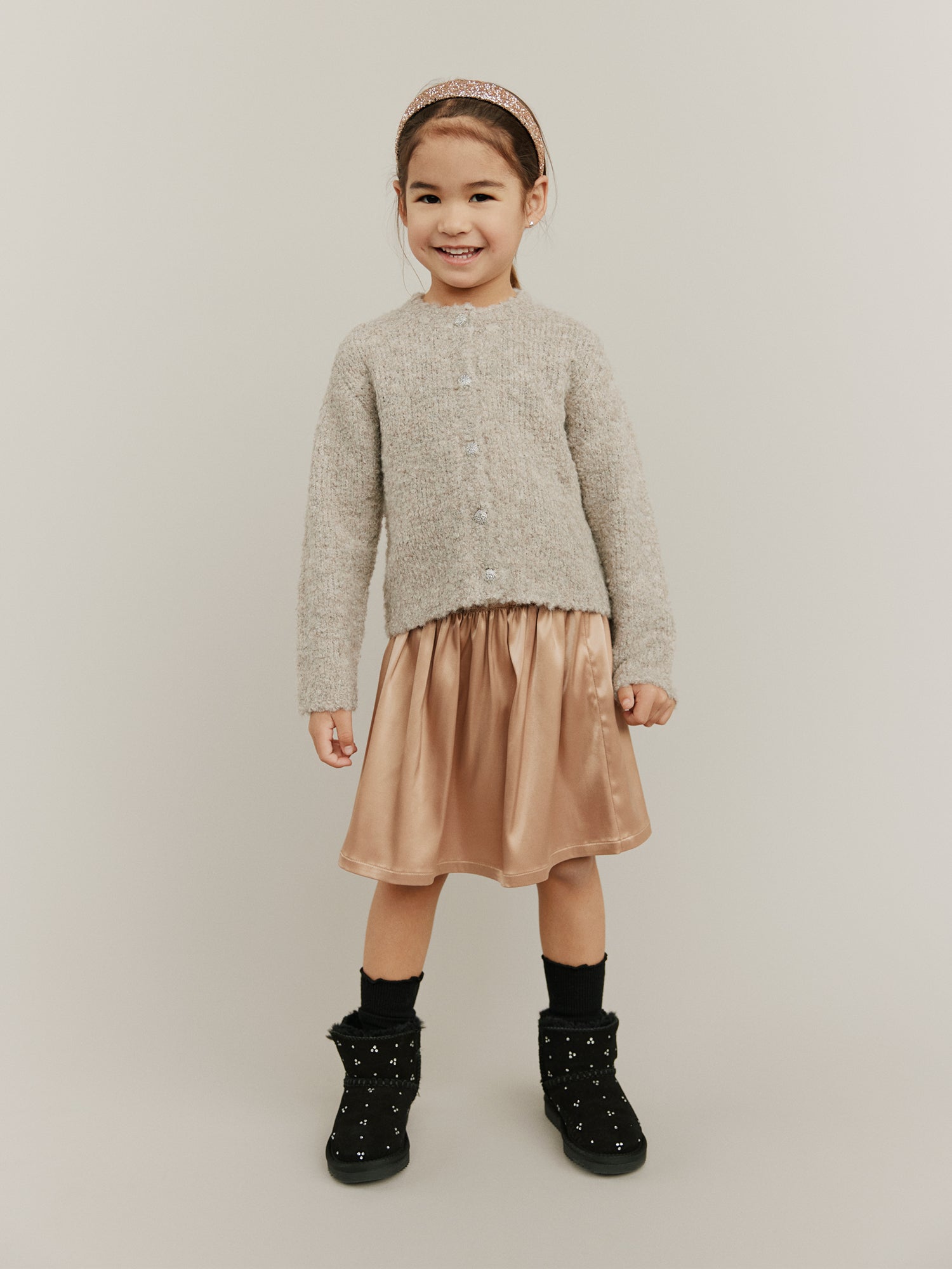Hand-knitted sweaters, warm and soft checks, sweet flower applications as they twirl across marbled floors. Every piece carries a whisper of old Paris, where elegance meets childhood wonder.