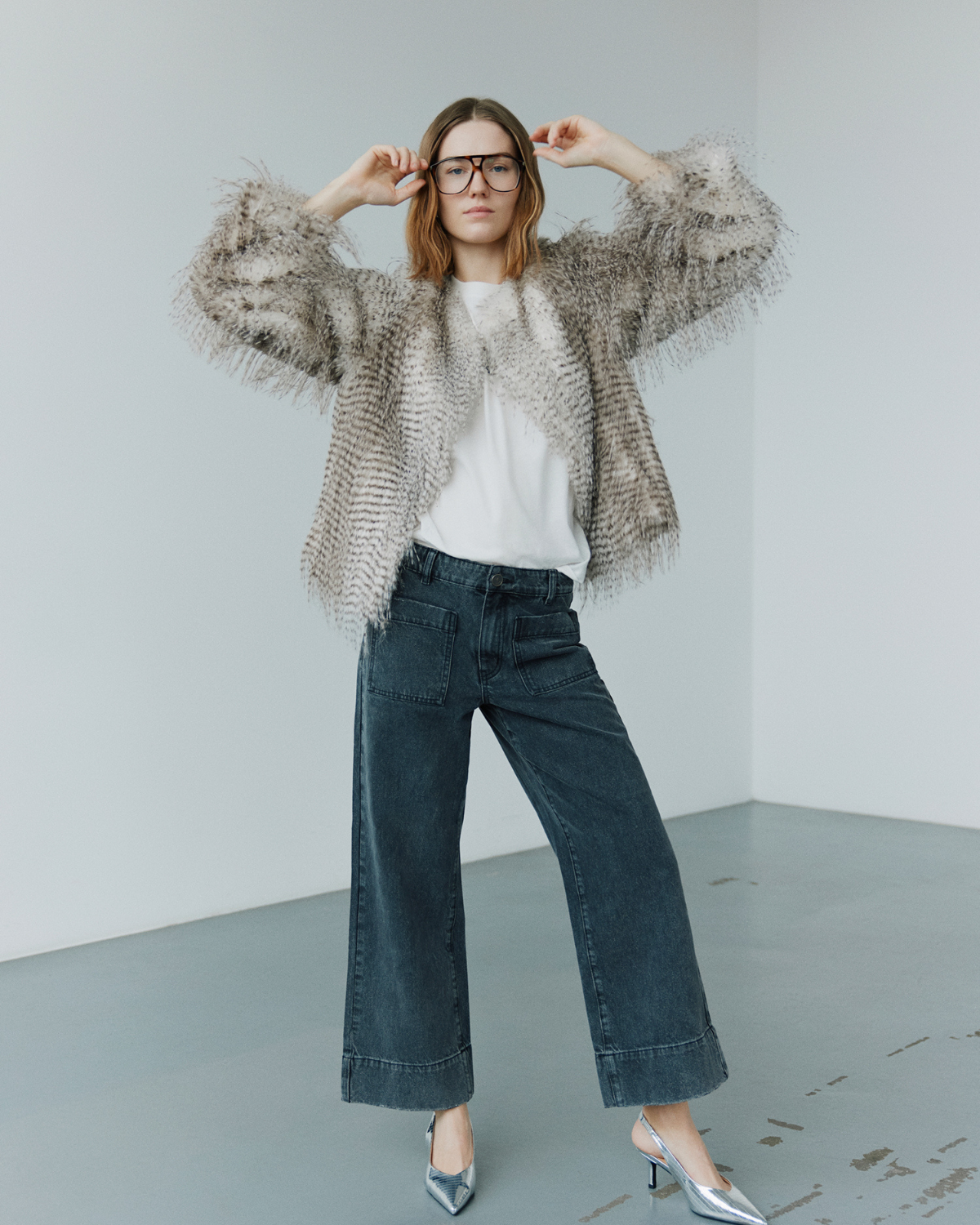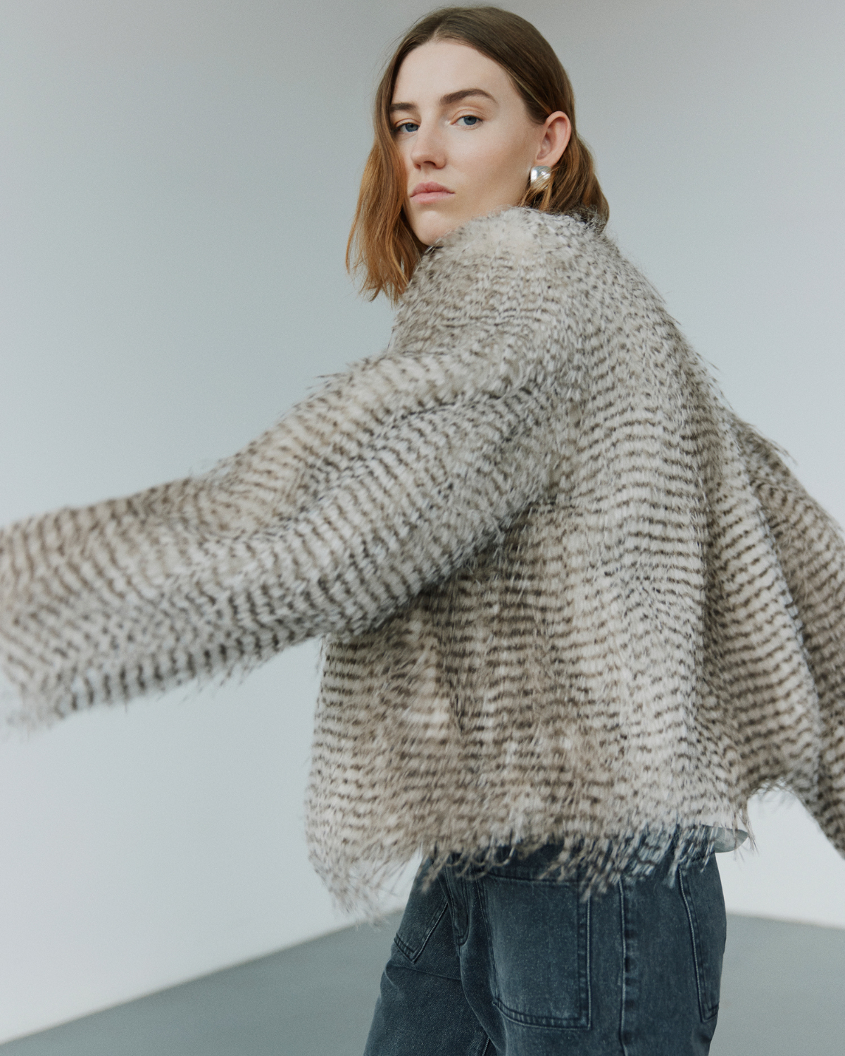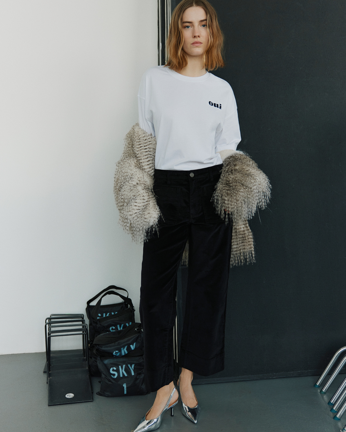 Tailoring, velvet and soft wool creates a luxurious contrast with jeans, while soft vegan fur adds warmth. Sequins and metallic threads catching the light like the twinkling Paris skyline, bringing an element of sparkle and surprise to the collection. The styles transition effortlessly from day to night – think fur paired with jeans, and satin dresses that glows like moonlight.