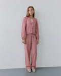 Sød rød- og hvidternet skjortebluse. Blusen har fine sløjfebånd i fronten og let puffede ærmer. Designet i 100% bomuld.