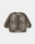 Løse bukser i med leopardprint. Bukserne har bindebånd i taljen, to lommer og elastik ved anklerne. Fremstillet i en blanding af bomuld, polyester og spandex.