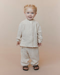 Bluse i cremefarve med små pointelle detaljer. Blusen har rund hals med flæsekant, lange ærmer med elastiske manchetter og knaplukning i fronten. Fremstillet i 100% bomuld.