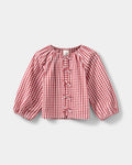 Løse ternede bukser i rød og hvid. Bukserne har bindebånd i taljen og en lommer i siderne. Fremstillet i 100% bomuld.